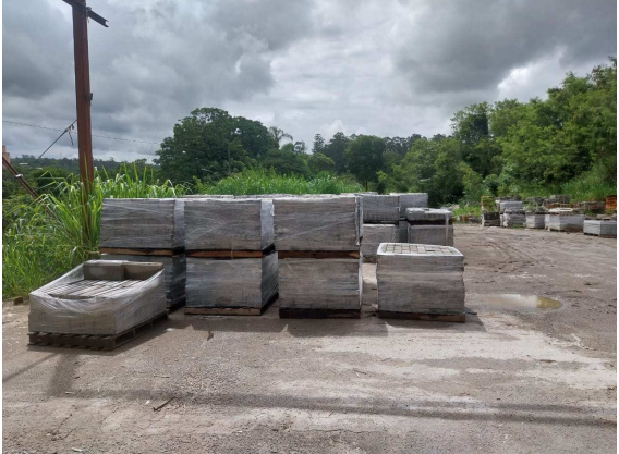 144m² - 12 partes de Blocos de Concreto Modelo Interbrick H6 natural 10 x 20cm, com 6 (seis) centímetros de espessura, drenante poroso, cor natural de concreto, avaliado em R$ 51,30 o metro quadrado. Conforme Certidão lavrada pelo Sr. Oficial de Justiça (id 73ad177): Os bloquetes penhorados são de produção da empresa executada, portanto, estão cientes que em caso de leilão e/ou adjudicação, deverão produzir os 144 m² penhorados para entrega. TOTAL DA AVALIAÇÃO: R$ 7.387,20 (sete mil e trezentos e oitenta e sete reais e vinte centavos). LOCALIZAÇÃO DOS BENS: Rua Floresta, 789, Vargem Alegre, Pedro Leopoldo/MG.
