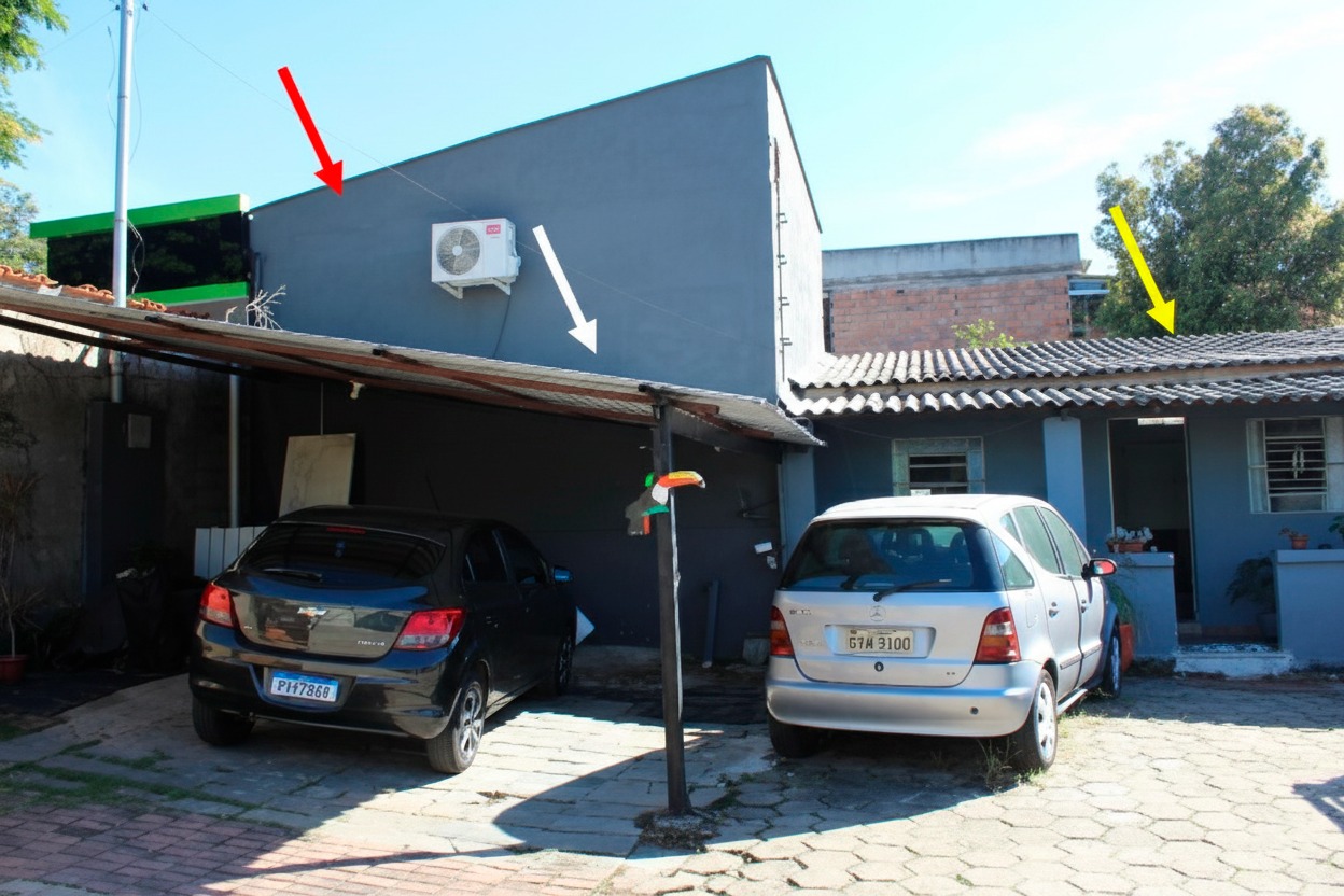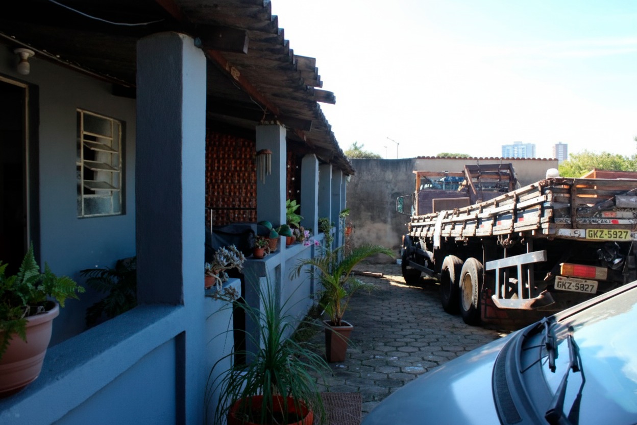 Imóvel composto por 02 lojas; barracão com 03 quartos, cozinha, banheiro, sala e varanda; área de terreno com aprox. 600m².