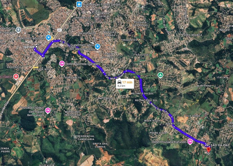Localização: Rua Principal, Sítio Rancho Fundo, próximo ao Bairro Guarani, na estrada que liga a cidade de Igarapé ao bairro Nossa Senhora da Paz, São Joaquim de Bicas/MG.