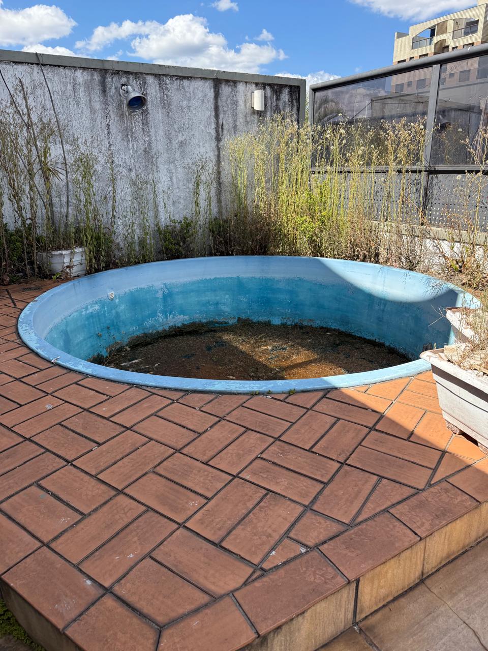 Apartamento de cobertura composto por 02 quartos, banheiro, cozinha, área de serviço, banheiro de empregada e 01 sala. Na parte superior, possui sala, banheiro, área externa e piscina em fibra de vidro, perfazendo área total aprox. de 229 m².