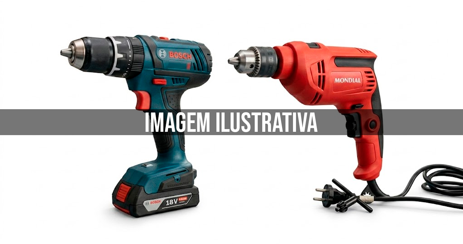 02 Furadeiras, sendo 01 marca Bosch, na cor azul e 01 marca Mondial, na cor vermelha.
