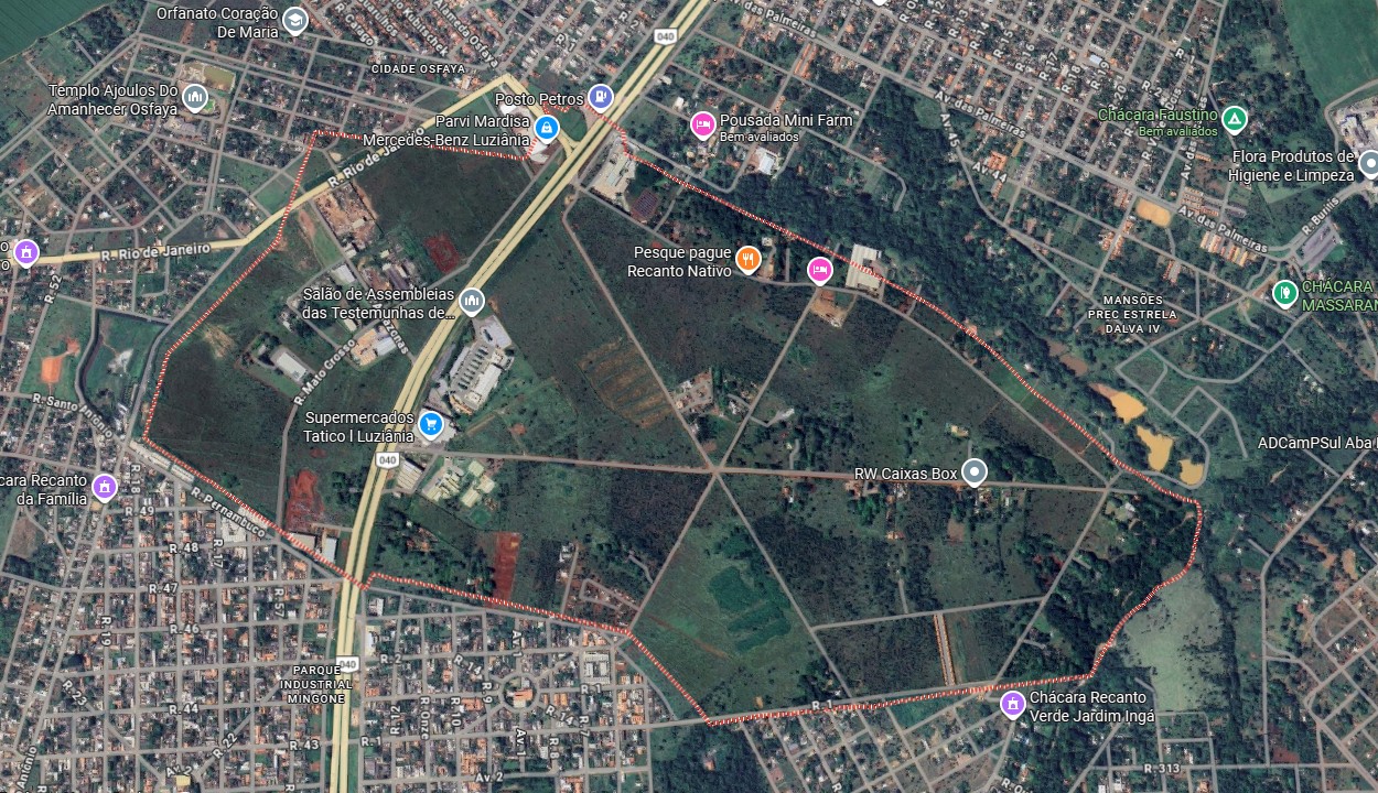 Chácara c/ área de aprox. 15.354,84 m², correspondente à Chácara nº 10, Quadra 02, localizada na zona suburbana da cidade de Luziânia/GO, no loteamento denominado Chácaras Vera Cruz, confrontando pela frente com a Praça Governador José Ludovico de Almeida (70,27 m), pelo lado direito com a Avenida São Paulo (108,11 m), pelo lado esquerdo com a Avenida Minas Gerais (108,72 m) e pelos fundos com as chácaras nº 09 e 11 (96,59 m cada).